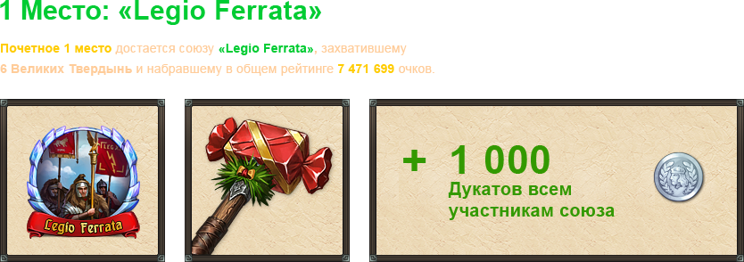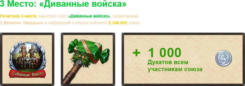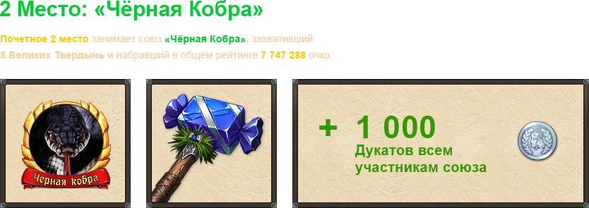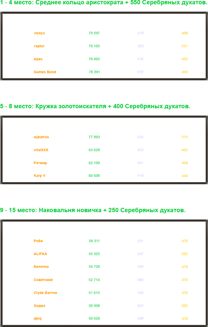 9 — 15 места: Наковальня новичка + 250 Серебряных дукатов.